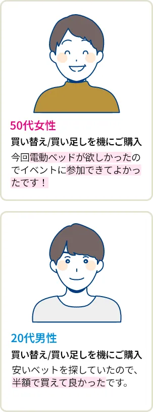 数多くのベッドを比較検討ができる県内屈指のイベントです。 大型イベントならではの会場特別割引