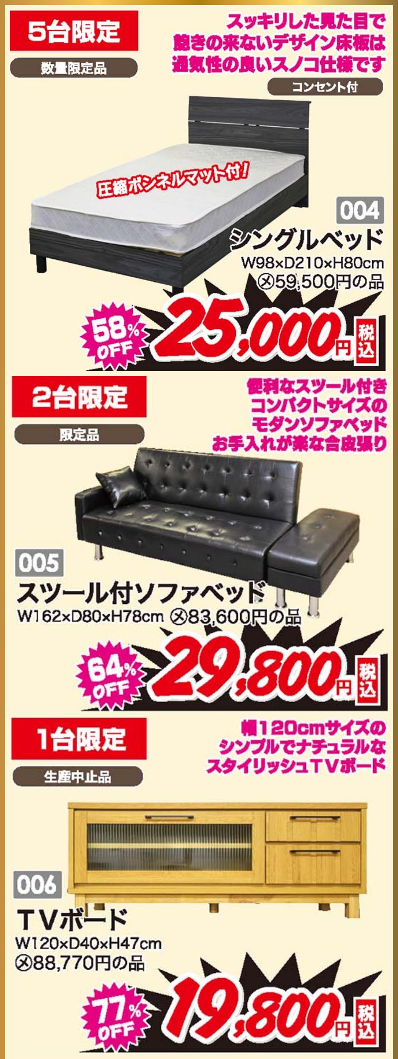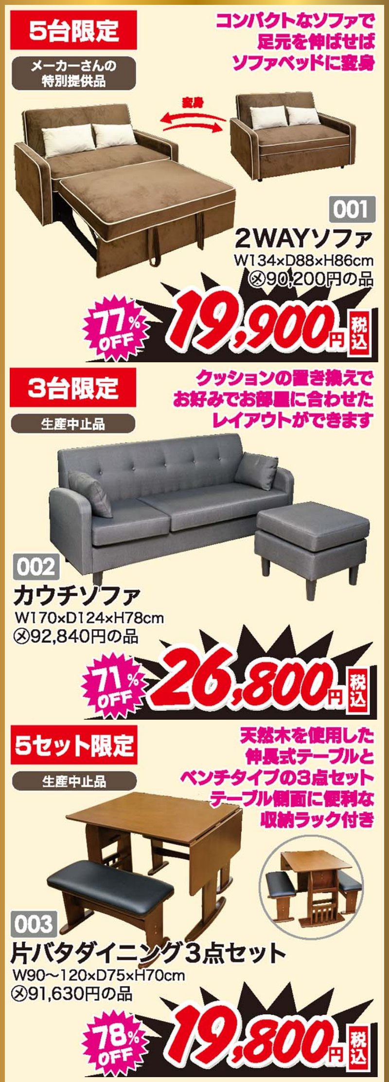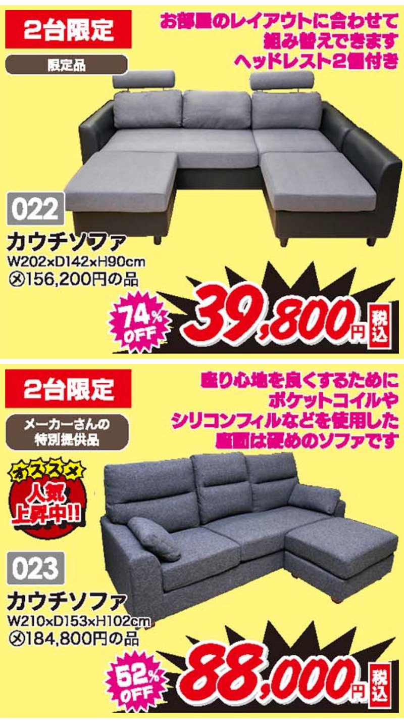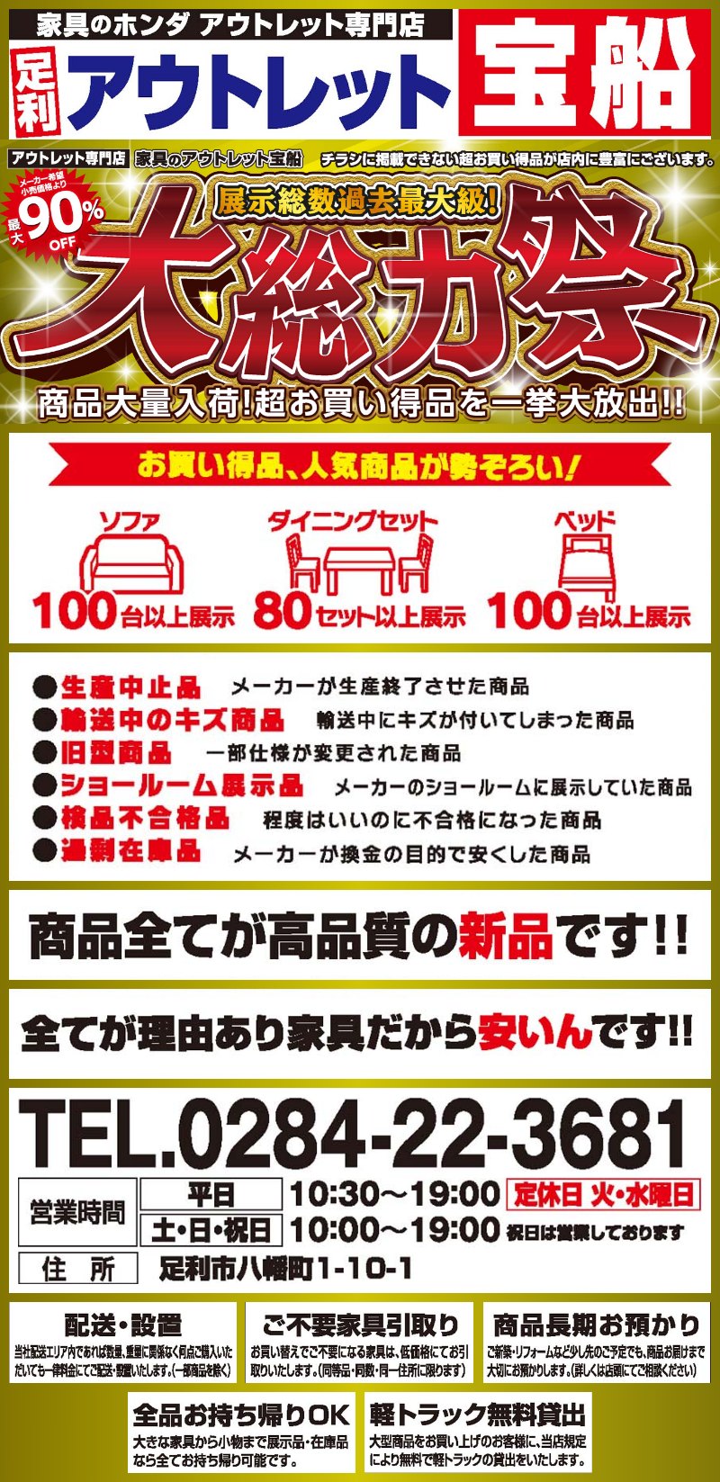家具のアウトレット宝船 足利店が展示総数過去最大級!大総力祭