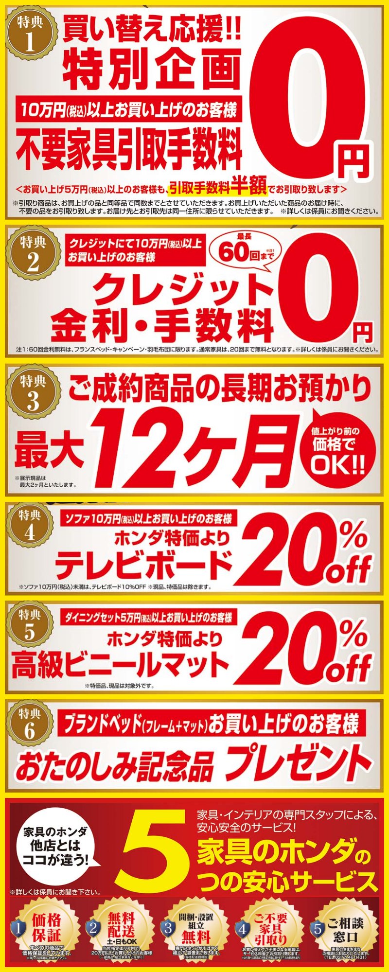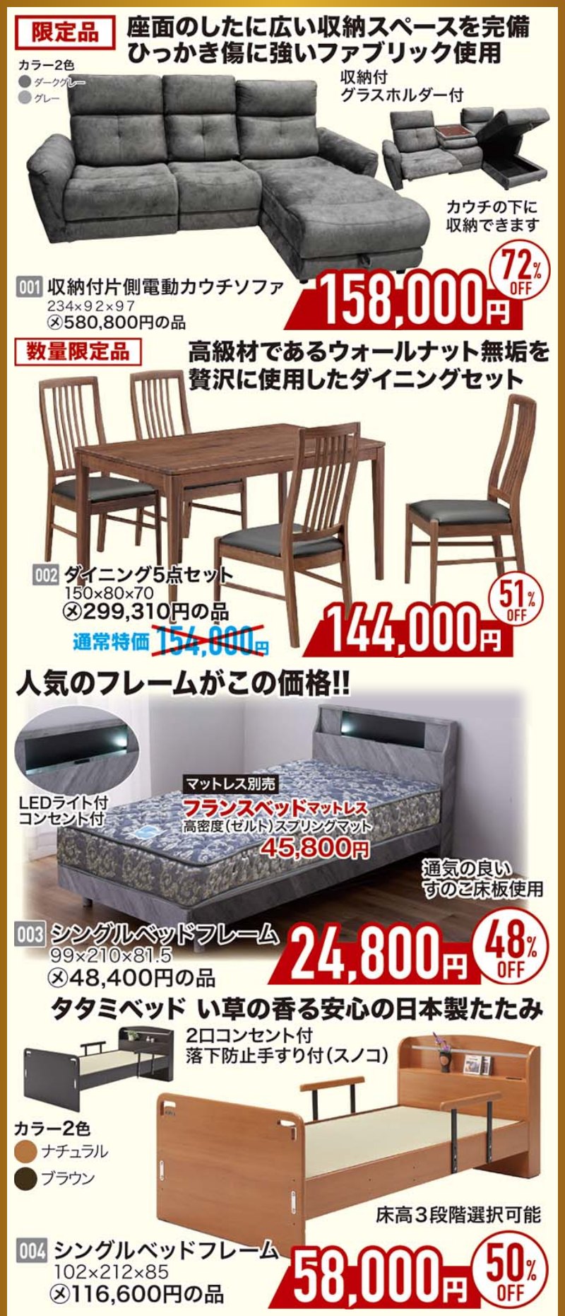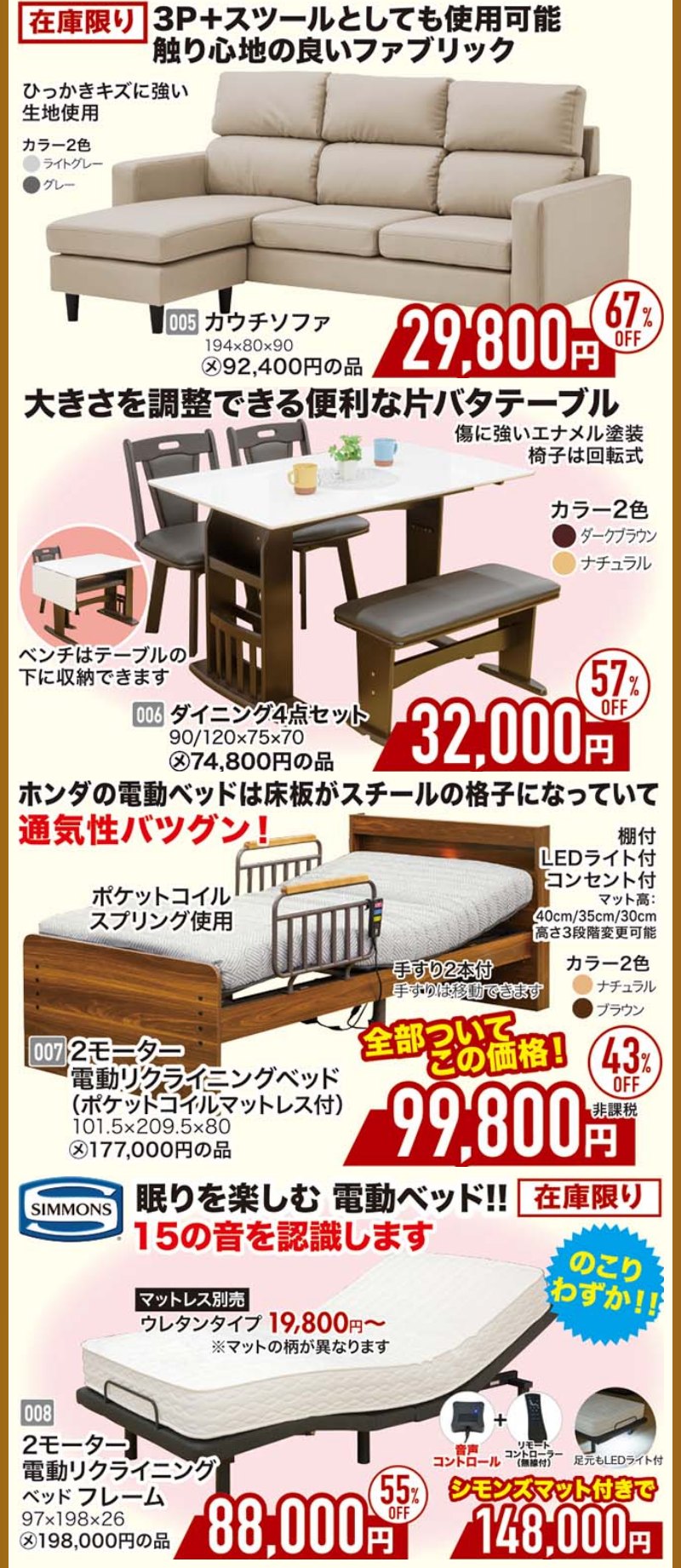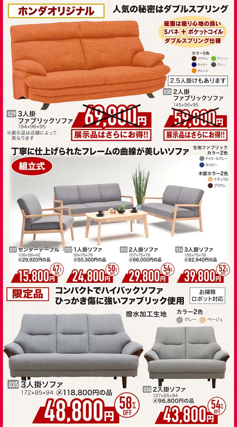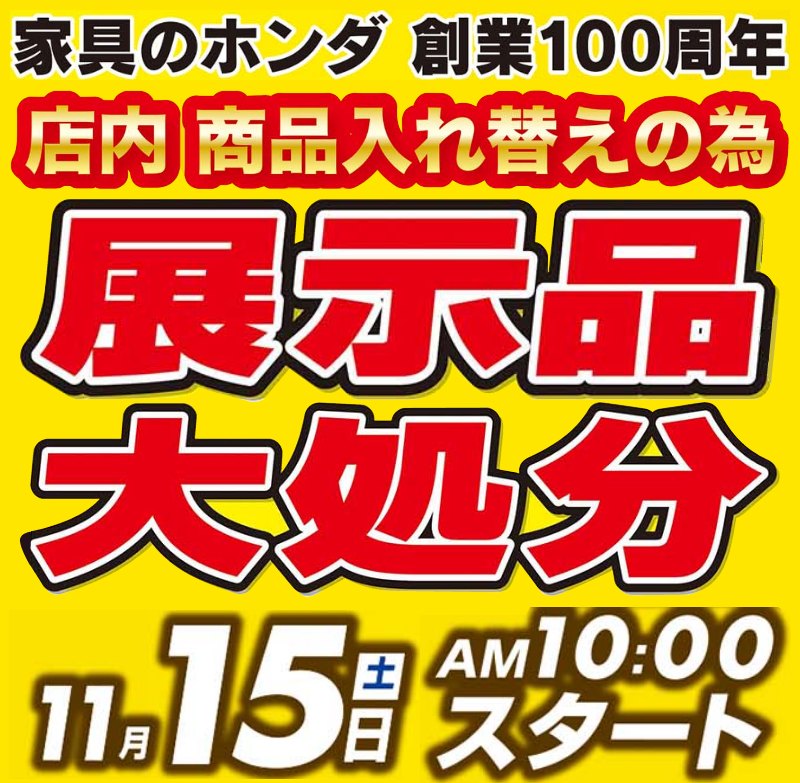 家具のホンダ行田店が店内商品売れ替えの為 展示品大処分!11/15(土)朝10時スタート