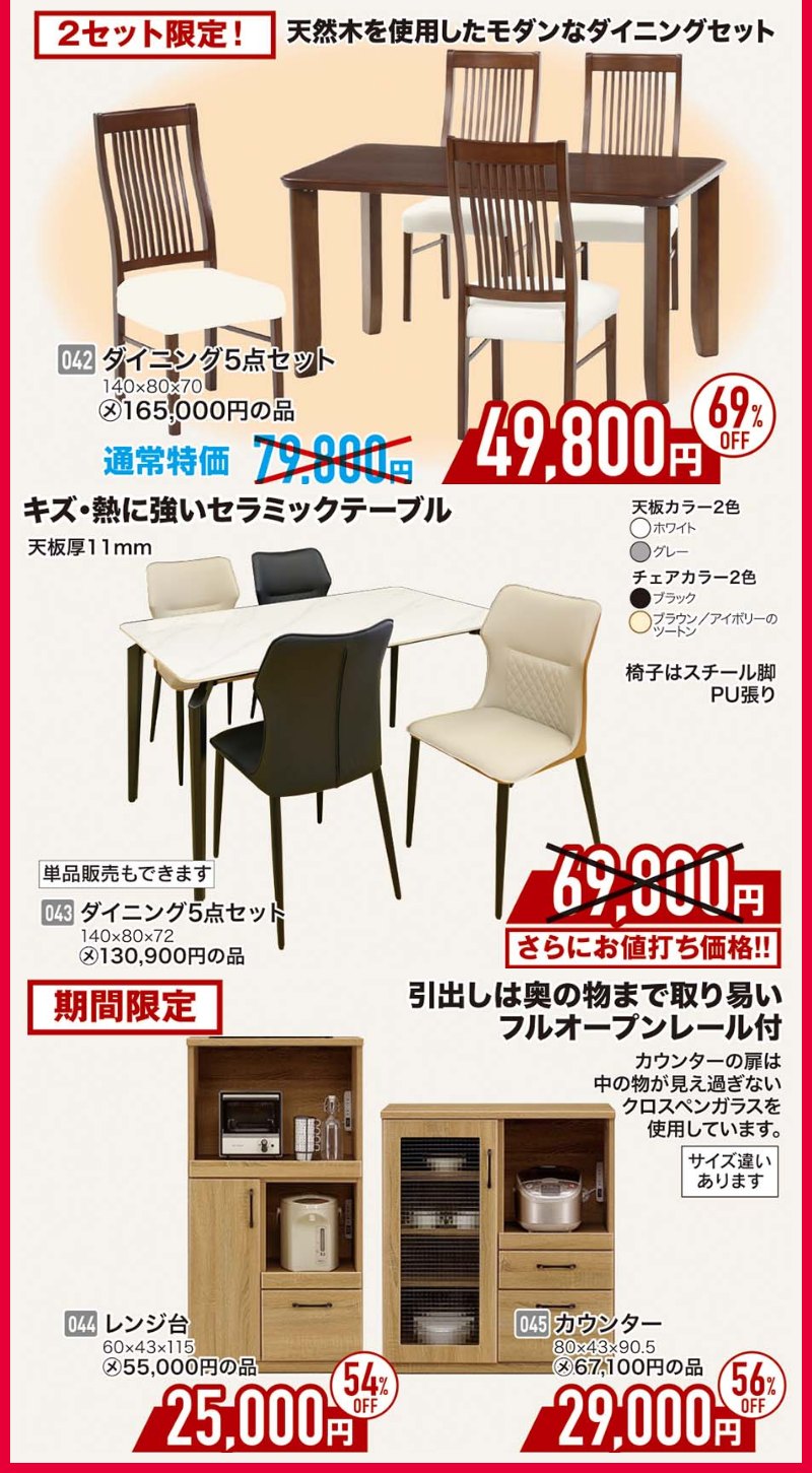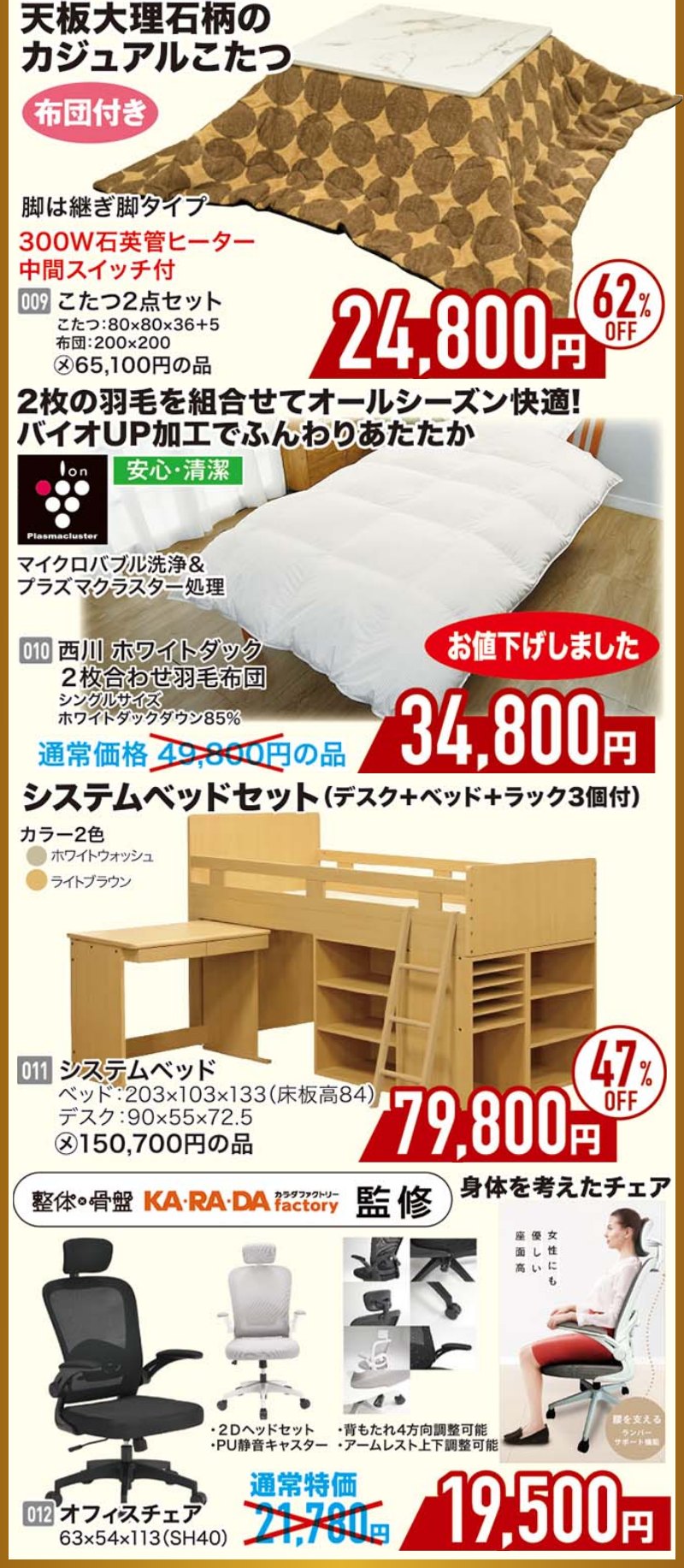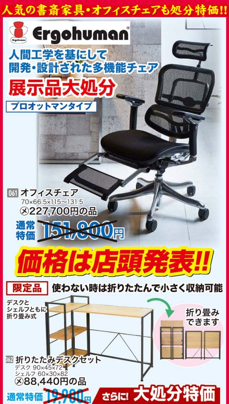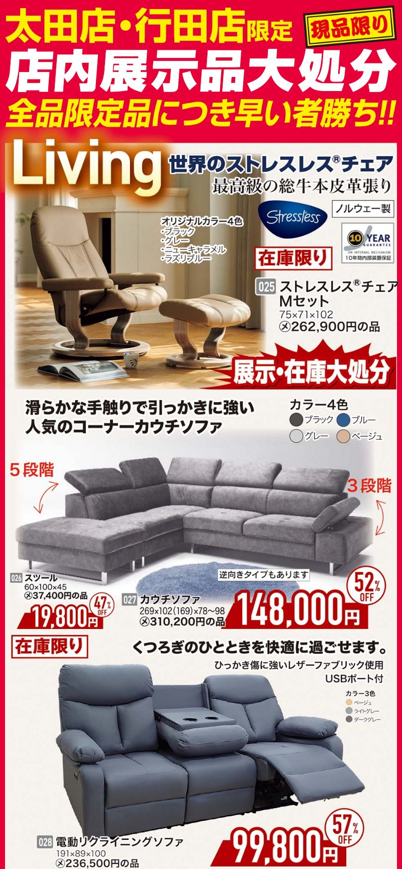 家具のホンダ行田店が店内商品売れ替えの為 展示品大処分!11/15(土)朝10時スタート