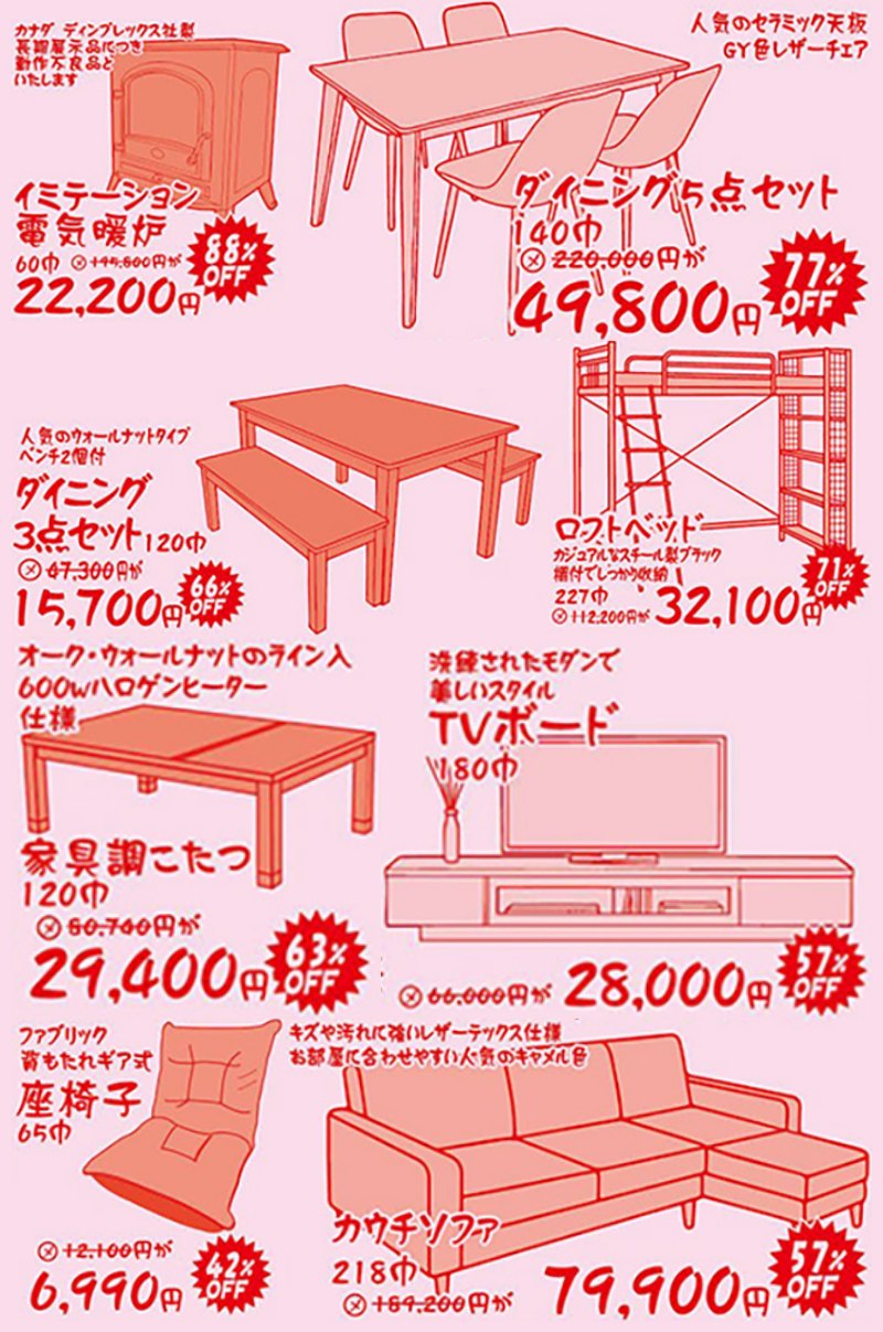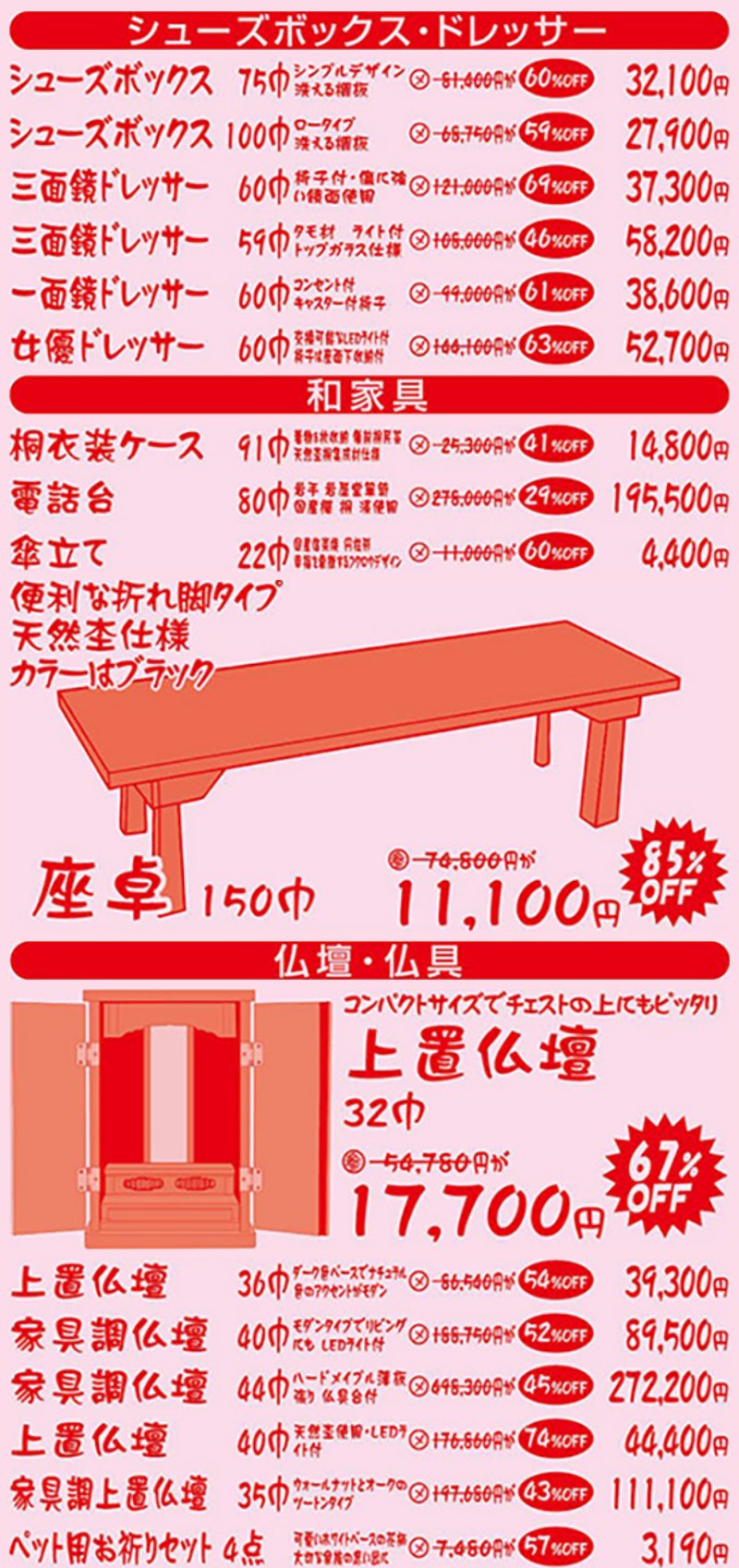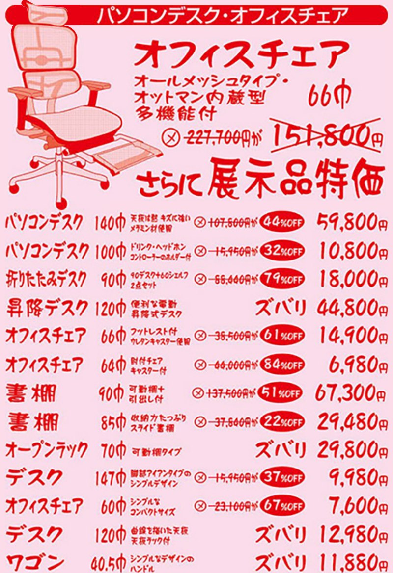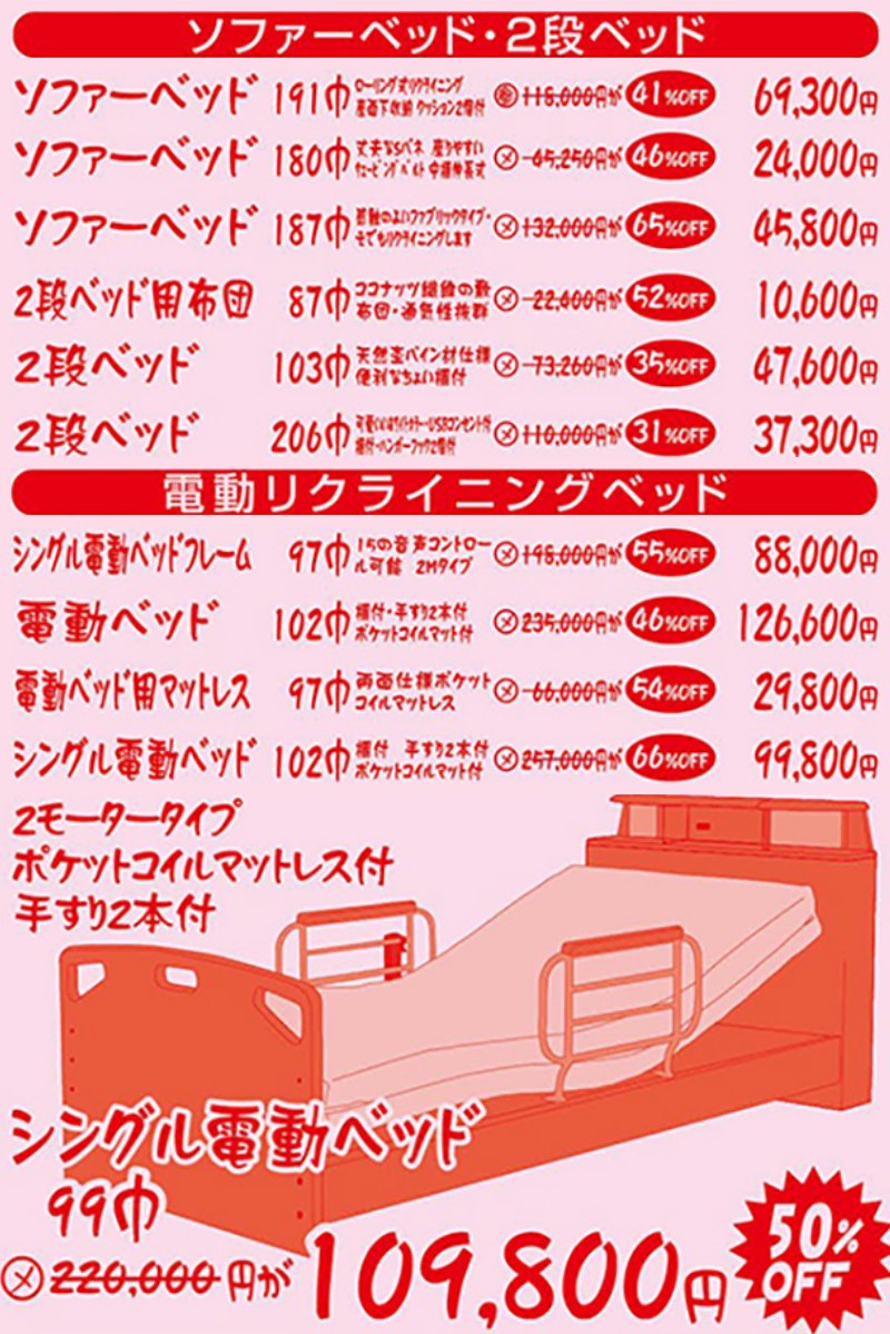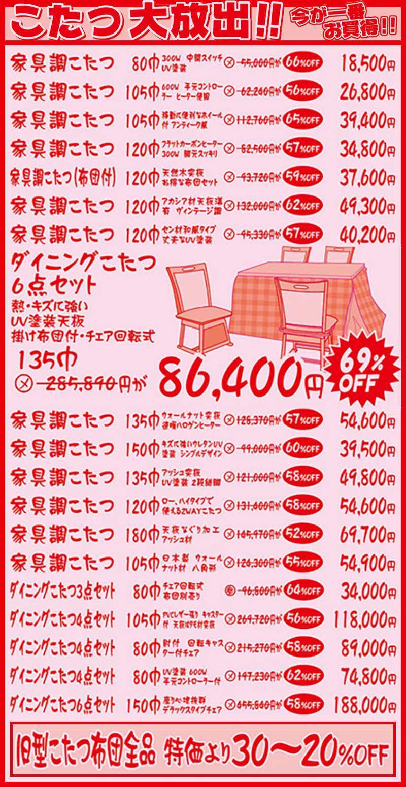 家具のホンダ伊勢崎店が大現品市!最大97%OFF!全館まるごと大処分!