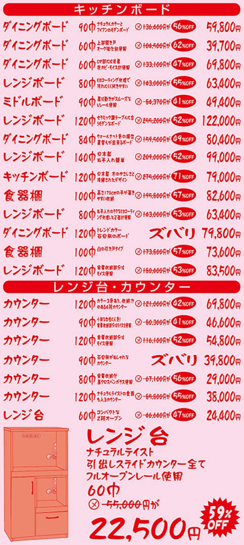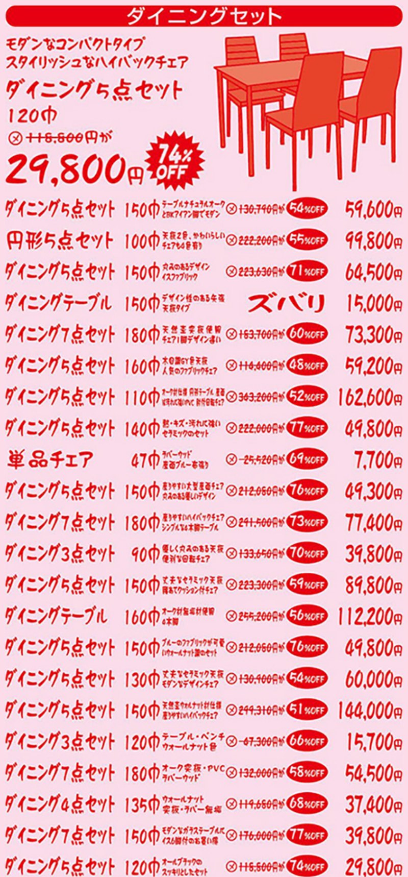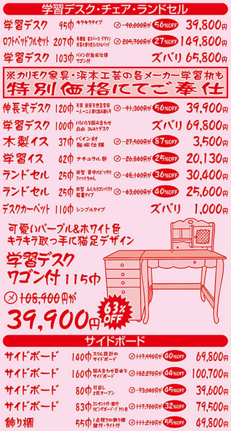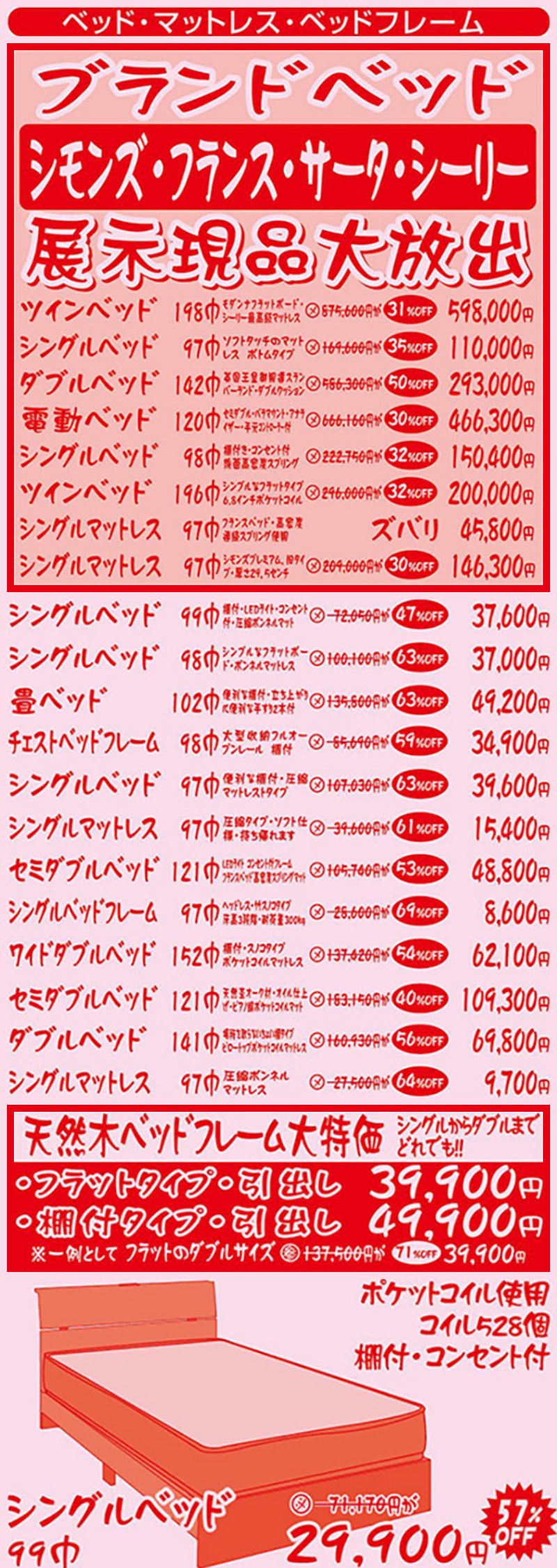 家具のホンダ伊勢崎店が大現品市!最大97%OFF!全館まるごと大処分!